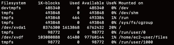 $ sudo mount /dev/xvdf /files