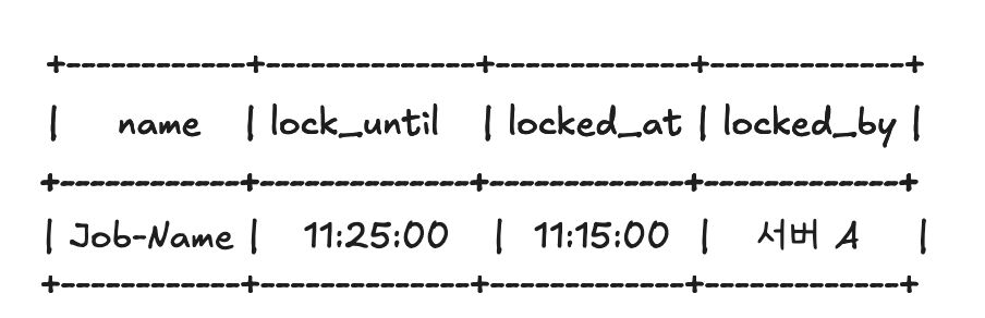 - 다른 인스턴스가 접근 시 Lock과 관련된 row을 확인하고 현재 실행중임을 확인하면, Job을 실행하지 않습니다.